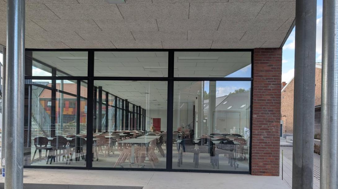Een essentieel onderdeel van de ruimtelijke herwerking is de introductie van middenlokalen. Zowel in de kleuterafdeling als in het lager onderwijs worden klaslokalen gekoppeld aan een centrale tussenruimte. Deze ruimtes functioneren als gedeelde leerzones voor groepswerk, differentiatie of tijdelijke uitbreiding van klasactiviteiten. De klassieke, cellulaire schooltypologie wordt zo opengebroken en vervangen door een flexibel netwerk van leerplekken. Architectuur ondersteunt hier expliciet pedagogische flexibiliteit en laat toekomstige aanpassingen toe zonder ingrijpende structurele werken.