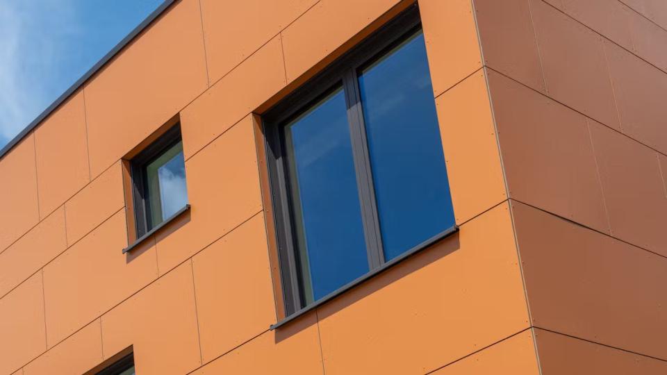 De gevel is opgebouwd met isolatie en een zwarte folie, waarop een houten lattenstructuur is bevestigd. De panelen zijn vastgeschroefd volgens de brandveiligheidsnormen. Horizontale voegen blijven open, terwijl verticale voegen zijn voorzien van EPDM-banden. Deze aanpak garandeert een duurzame, veilige en esthetische gevelafwerking.