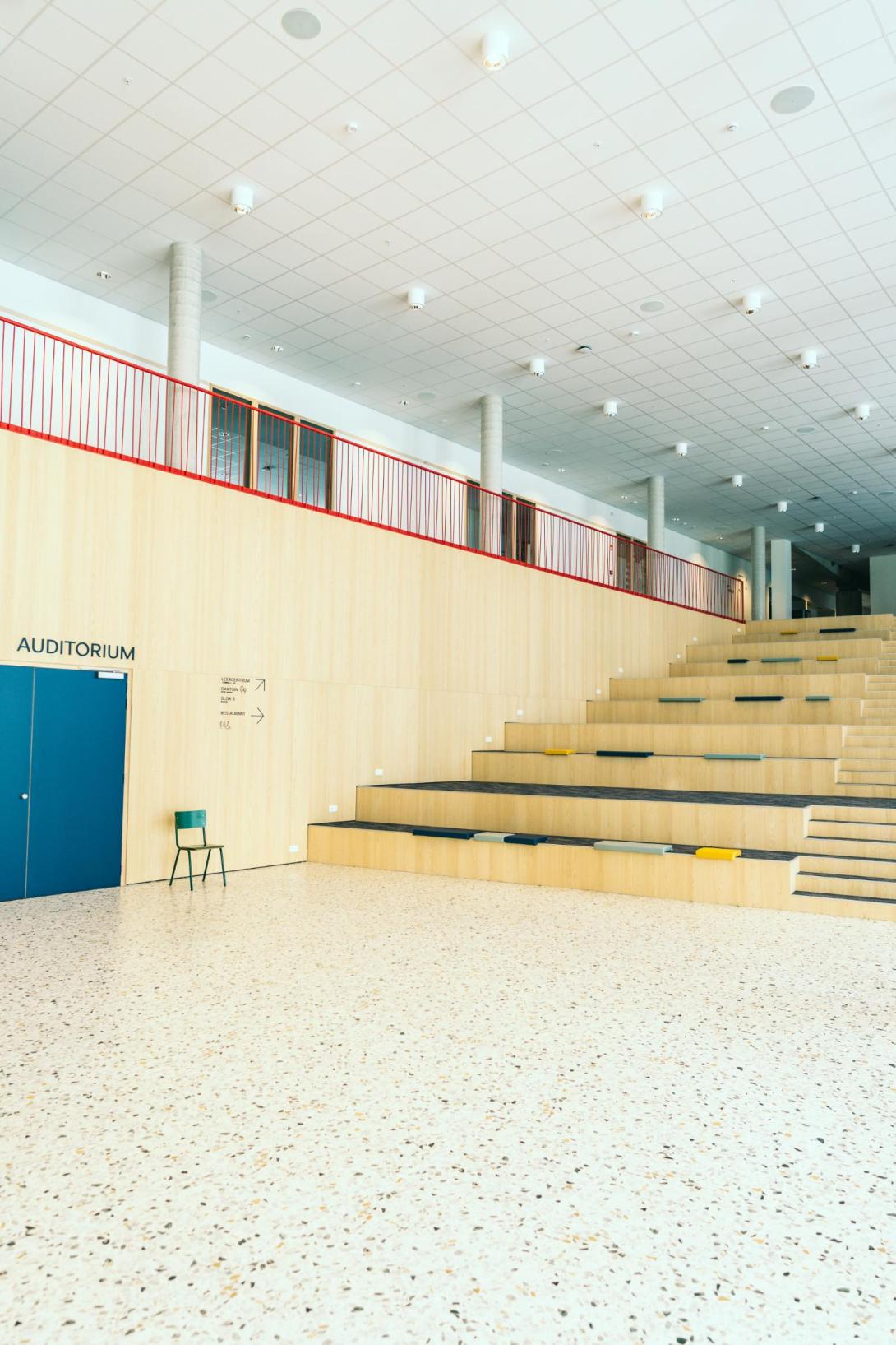 De uitbreiding verdubbelt de capaciteit van de campus tot een nieuwe thuis voor ongeveer achtduizend studenten, met in totaal circa 9.500 m² bijkomende nieuwbouw bovenop de bestaande volumes. Constructief werd gekozen voor een robuuste betonstructuur met grote overspanningen, waarbij geprefabriceerde kolom‑ligger‑ en vloerelementen instaan voor draagkracht, akoestische massa en thermische inertie.