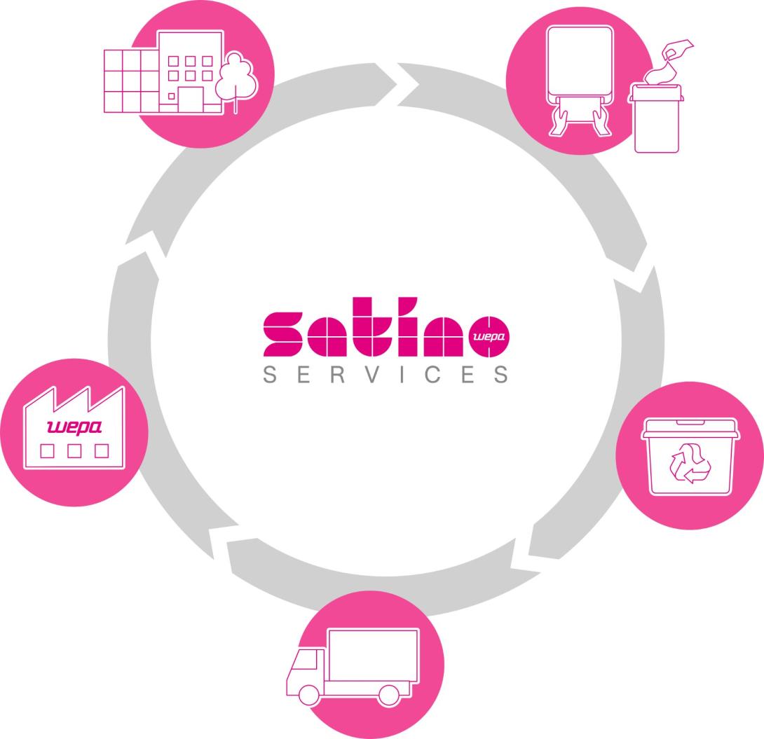 In de meeste scholen belandt gebruikt handdoekpapier gewoon bij het restafval. Zonde, vindt Satino by WEPA. Want dat papier kan perfect gerecycled worden. Met Satino Services wordt het ingezameld, verwerkt en teruggebracht als nieuw hygiënepapier – klaar voor gebruik in dezelfde sanitaire ruimtes. De kringloop is rond.