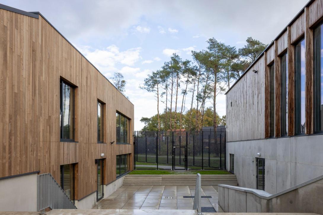 Omdat de campus tijdens de werken operationeel blijft, is gekozen voor een bouwteamformule met nauwe samenwerking tussen bouwheer, ontwerpers en aannemer Vanhout. Fasering en veiligheid zijn daarbij bepalend voor de positionering en realisatie van de nieuwbouw. De duurzaamheidsmeter GRO fungeert als kader voor energie, materialen, water, mobiliteit en binnenmilieu. Dit vertaalt zich in compacte en goed geïsoleerde volumes, een duidelijke functiescheiding en de inzet van hernieuwbare energie, onder meer via warmtepompen. De landschappelijke inbedding en vergroening dragen bovendien bij aan klimaatadaptatie en het beperken van hittestress.