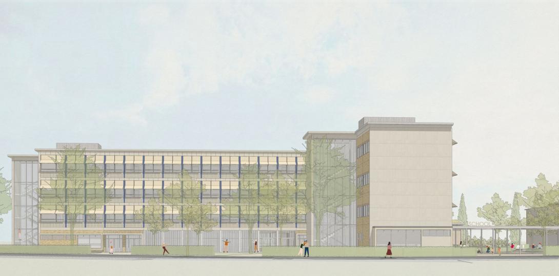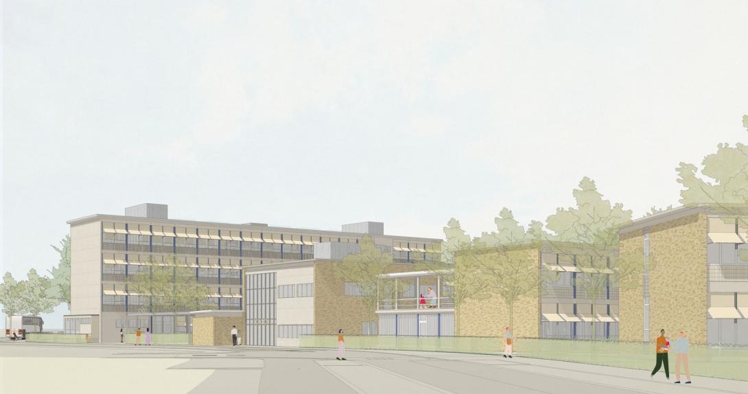 Na een ontwerpwedstrijd op conceptniveau werd het Nederlandse bureau Geurst & Schulze architecten aangesteld. Hun voorstel onderscheidde zich door een sterke visie op de combinatie van erfgoedbehoud, circulariteit en onderwijsarchitectuur voor kwetsbare doelgroepen. Bovendien hebben ze een uitgebreide ervaring met schoolprojecten, in het bijzonder voor buitengewoon onderwijs. Hun visie vertrekt vanuit respect voor de modernistische basisstructuur, die wordt gebruikt als rationeel raster voor nieuwe leeromgevingen. Gevelritmiek en volumetrie blijven herkenbaar, terwijl circulatie, gebouwschil en de buitenruimte grondig worden herwerkt volgens hedendaagse comfort- en onderwijsnormen.